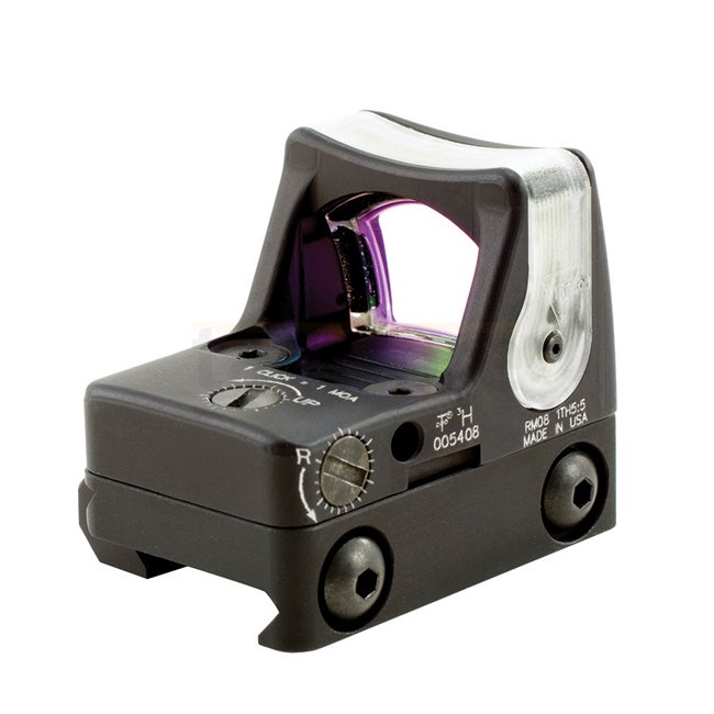 Developed to improve precision and accuracy with any style or caliber of weapon, the Trijicon RMR (Ruggedized Miniature Reflex) is designed to be as durable as the legendary ACOG. The RM08 is a battery free sight, featuring Trijicon fiber optics and tritium. Housed in rugged forged aluminum, the RMR is extremely tough yet lightweight. New easy-to-use adjusters with audible clicks allow for quick windage and elevation adjustments.