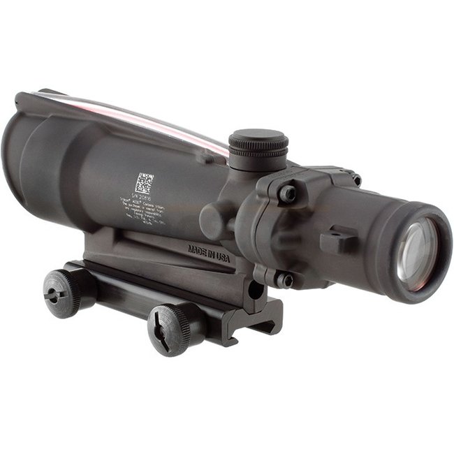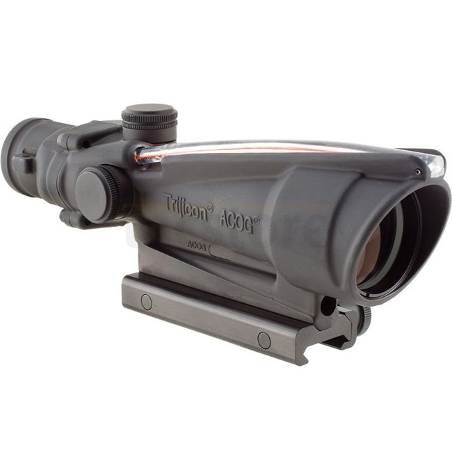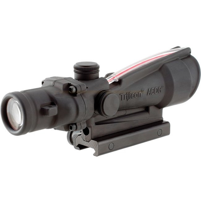 The 3x35 ACOG scope provides a dual-illuminated reticle using fiber optics and tritium for a bright aiming point in any light condition. The reticle is calibrated for .308 / 7.62.