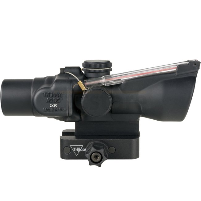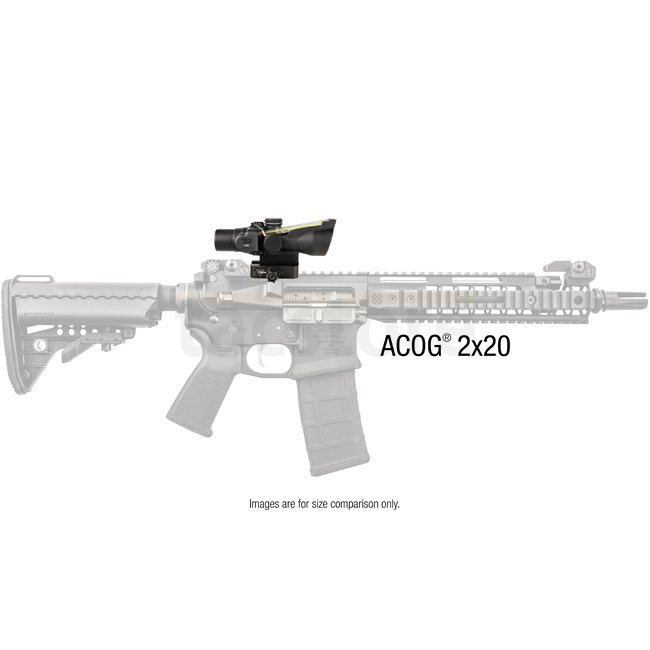 An ideal compact scope for quick target acquisition, the Trijicon TA47-C 2x20 ACOG Scope features a red crosshair reticle with Fiber Optics & Tritium illumination. Weighing only 241 g and measuring 135 mm in length, it offers a clear field of view at 100
