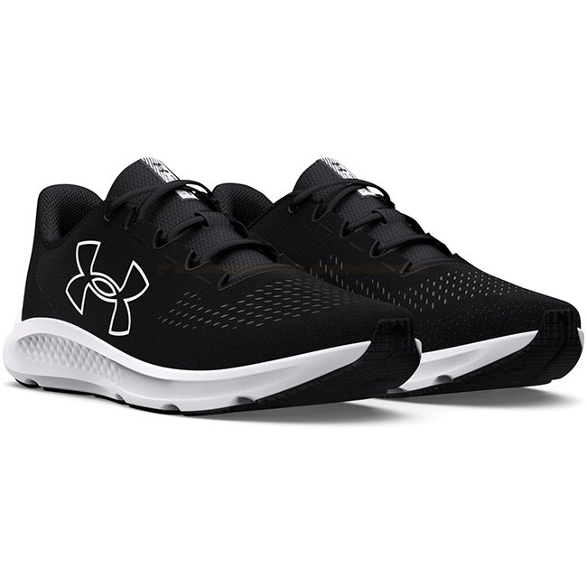 Under Armour Mens Charged Pursuit 3 Big Logo Running Shoes - Black / White - 12