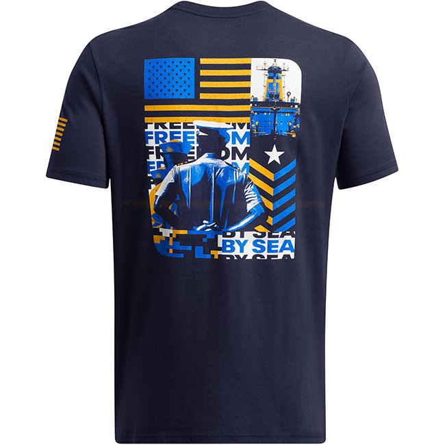The UA Freedom By Sea Tee is part of the Freedom collection featuring a maritime motif. It blends patriotic design with everyday comfort.