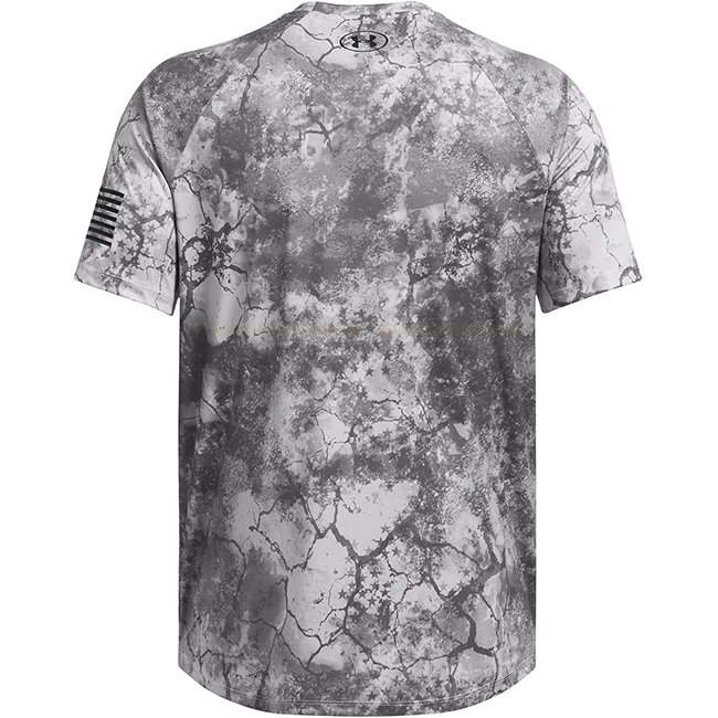 The UA Tech Freedom Camo Short Sleeve combines technical fabric with bold camo styling and a patriotic Freedom logo.