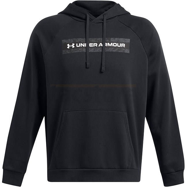 Under Armour Mens Rival Fleece Camo Chest Stripe Hoodie - Black / White - S