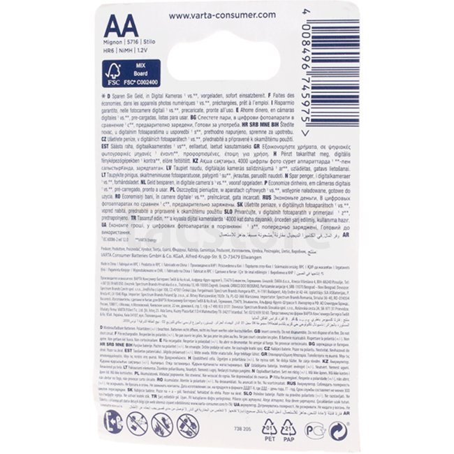 Varta AA Rechargable Batteries 2600mAh 4pcs - Long-lasting and eco-friendly rechargeable batteries perfect for high-drain devices.