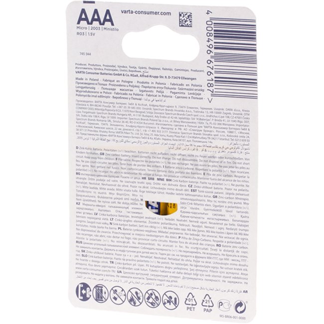 Varta AAA Superlife 4pcs - Long-lasting and reliable AAA batteries for all your devices. Pack of 4 ensures you always have a spare ready. Trust Varta for quality performance and durability.