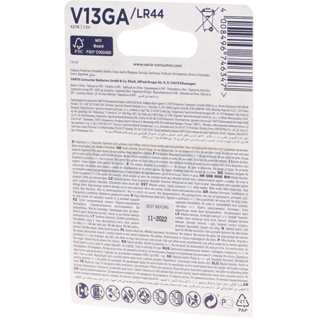 Varta LR44 / V13GA 2pcs - Reliable and long-lasting, these Varta LR44 batteries are perfect for watches, calculators, and small electronic devices. Get a pack of 2 to always have a spare on hand.