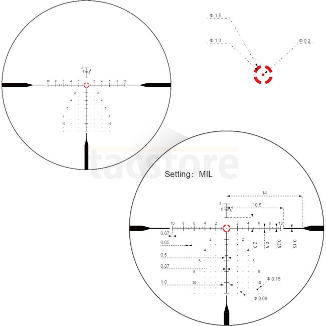 - FFP Mil-Dot reticle (VET-RAR 2) with 11-level red illumination