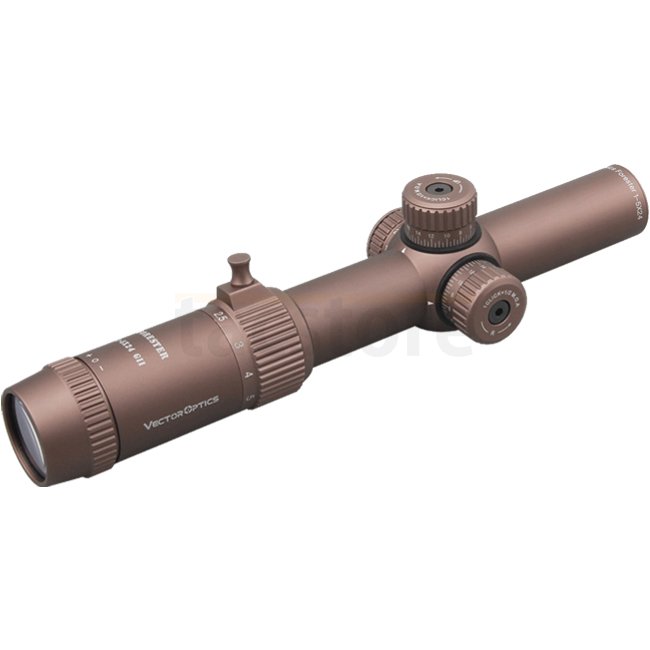 The Vector Optics Forester 1-5x24 GenII Riflescope - Coyote is a versatile optical device ideal for both short and long-range shooting. With a magnification range of 1-5x, this riflescope offers quick target acquisition and precision. Designed with a 24mm