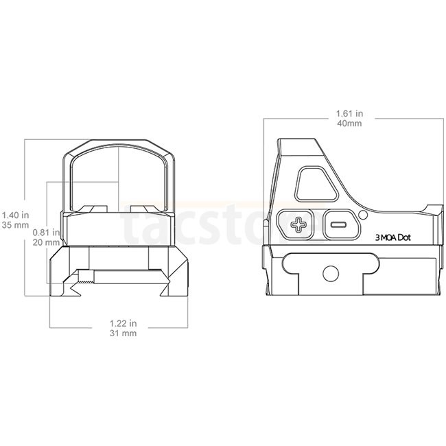 This ultra-compact red dot sight provides fast target acquisition and consistent accuracy. It features a 3 MOA dot, an aspheric lens for minimal distortion, and a side battery compartment with motion sensor for automatic shut-off. Built from durable 7075-T6 aluminum alloy for maximum stability and reliability.