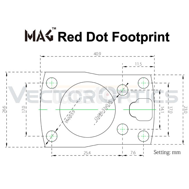 Vector Optics Frenzy-S Red Dot with 3 MOA dot size and 8 brightness levels. Unlimited eye relief and parallax setting. Lightweight and compact design.