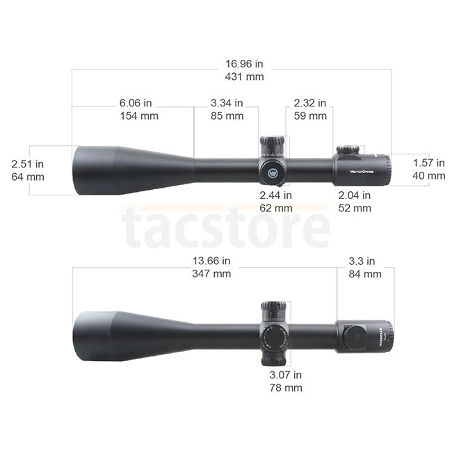 This specialist rifle scope is designed for long-range and precision competition use. It features a fixed 46× magnification and a 60 mm objective lens for outstanding light gathering. The 34 mm one-piece tube allows large adjustment travel (elevation/windage) of approximately 40 MOA with clicks at 1/8 MOA. Side focus parallax adjustment starts at 10 m, and the illuminated MFL reticle supports accurate aiming under demanding conditions.