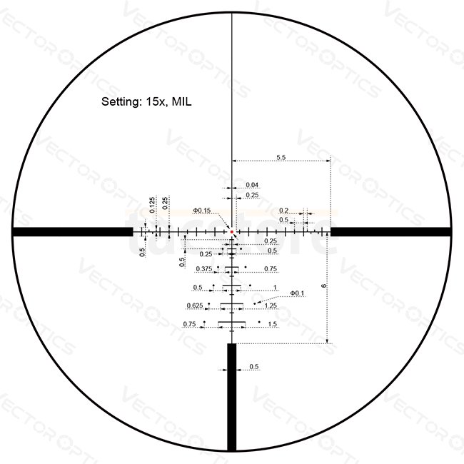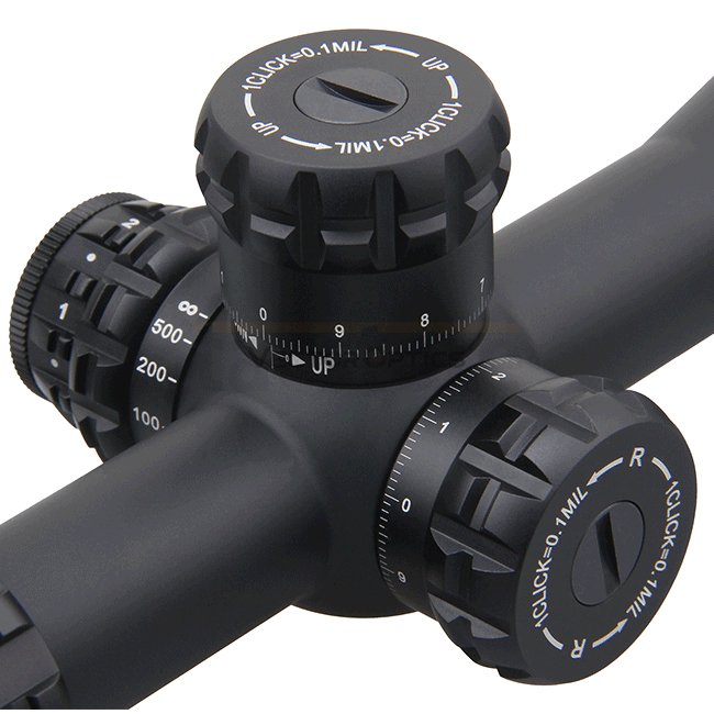 - Click value: 1/10 MIL (or 1/4 MOA depending on version)