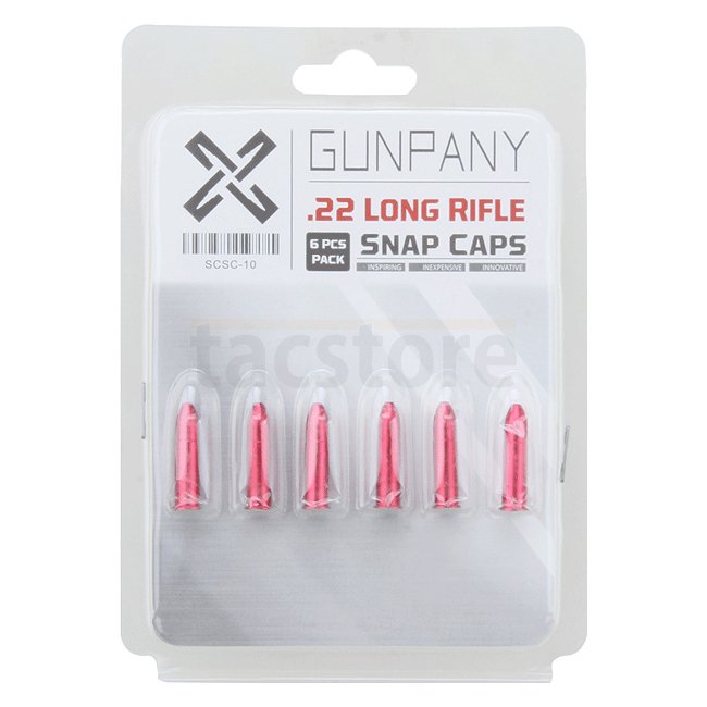 Practice loading and training dummy rounds for .22 LR caliber. Aluminum material with soft silicon primer. Set includes 6 pieces.