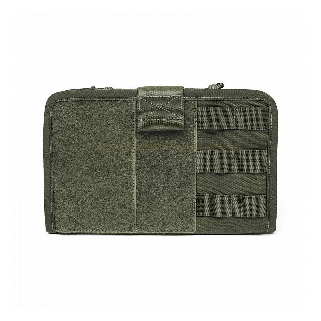 The Warrior Command Panel Gen2 - Olive is a versatile addition to your gear, fitting perfectly on MOLLE vests and bags with its compact dimensions of 16 x 26 x 3.5cm.