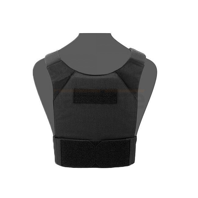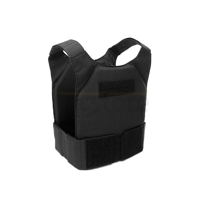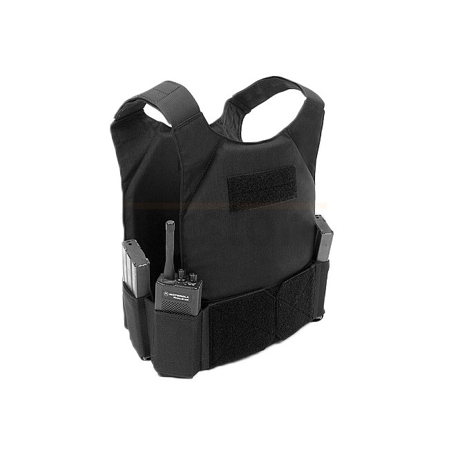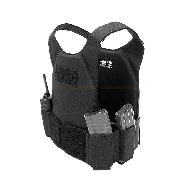 Warrior Covert Plate Carrier - Black: Low profile sleek armor carrier designed to hold 10x12" plates. Features adjustable shoulders, double layer elastic sides with internal pouches, and upgrade option to CPC-MK1 Combo.