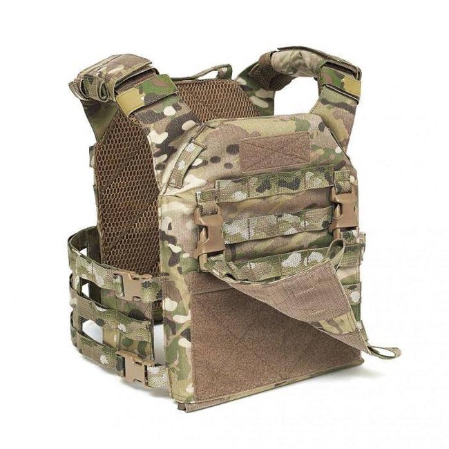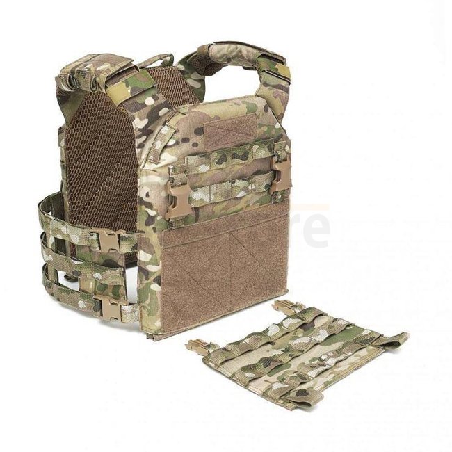 The DFP removable MOLLE Front Panel attaches via two vertical SQM clips on the front of the RPC. This design allows users to configure additional panels with mission-specific pouches, enabling quick interchangeability as roles or tasks change. Panels can be swapped in seconds, ensuring optimal setup for any mission. Constructed from high-quality fabric, this panel ensures durability and reliability in various operational environments.