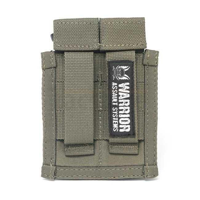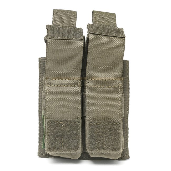 The Warrior Double 9mm Direct Action Mag Pouch is a compact solution designed to offer fast access to two 9mm magazines. Its cover flap can be rolled down and secured with a Velcro closure, allowing for quick reloading. The pouch is MOLLE-compatible, making it easy to attach to various tactical carriers and bags.
