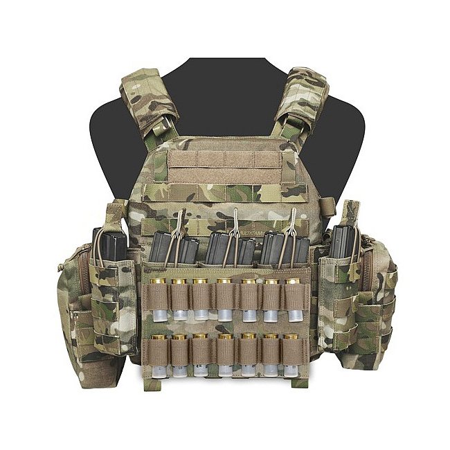 Warrior Double Horizontal Breaching Shotgun Panel - Multicam: MOLLE compatible, holds 14 shotgun shells, fits Warrior DCS, RICAS, and RAPTOR vests, works with Warrior Open Magazine Pouches.