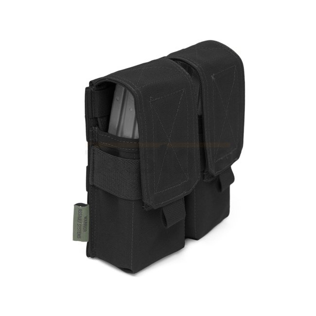 Warrior Double M4 Magazine Pouch - Black: The Warrior Assault Systems Double M4 pouch holds 4 x M4/SA80 5.56mm magazines securely in demanding environments with heavy-duty design and MOLLE compatibility.
