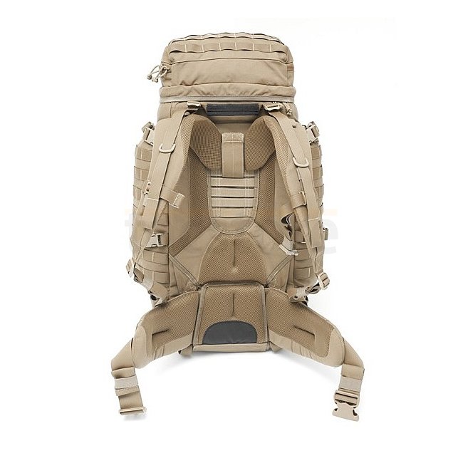 The entire pack is covered in MOLLE webbing which allows the attachment of various pouches to increase carrying capacity.