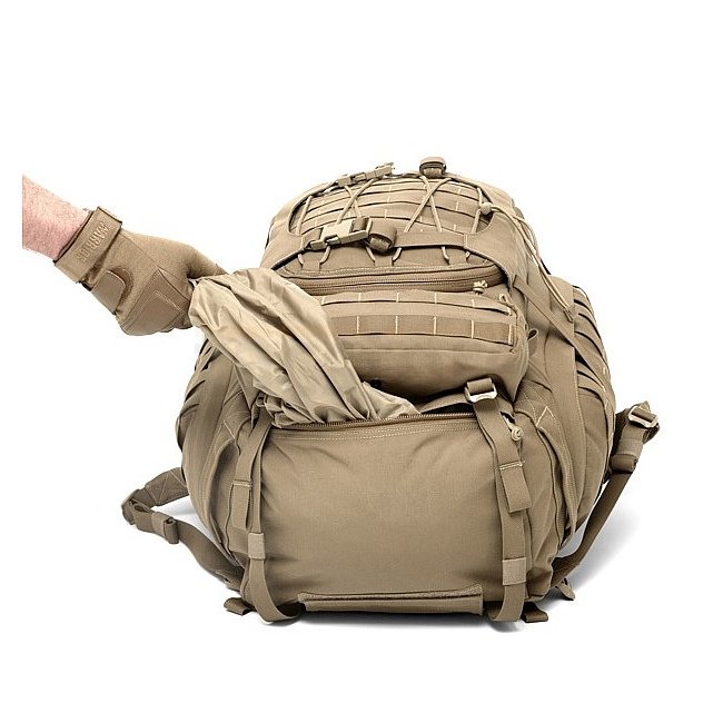 Access is via a helmet friendly top opening lid with claymore style heavy duty zipped pouch on top side, also features map style pocket on the inside. Additional access is via the large reinforced center pocket, this features a heavy duty size 10 sealed seam zip which opens into a medium sized quick access pocket (the flap opens top to bottom), this main external pocket is lined with a heavy duty air mesh fabric which has a similar zip which opens (bottom to top) allowing convenient access to the middle and bottom of the pack.