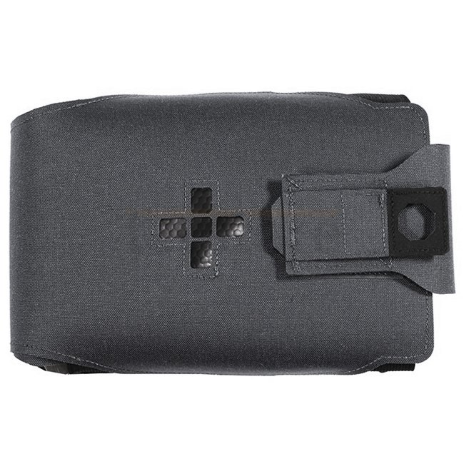 The Laser Cut Large Horizontal Individual First Aid Kit (IFAK) by Warrior Assault Systems is engineered to accommodate a comprehensive medical kit suitable for Special Forces operators. It securely holds multiple Combat Gauze, Chest Seals, CAT tourniquets, trauma bandages, and nasopharyngeal airways within a removable inner sleeve featuring elasticated pockets and loops for organized storage. The inner sleeve is easily accessible with a single hand via a Hypalon-coated pull tab, ensuring rapid deployment in critical situations.