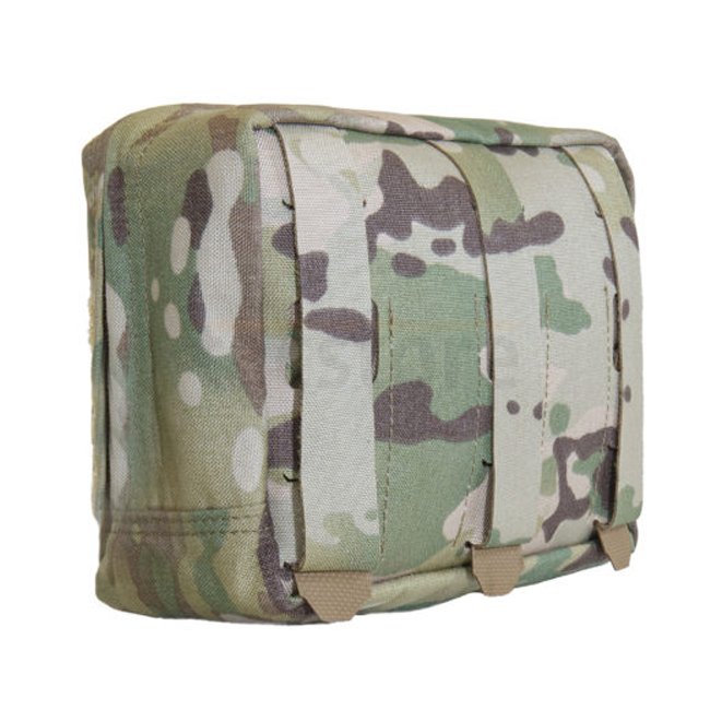 The Warrior Laser Cut Medium Horizontal Utility Pouch is a versatile storage solution designed for tactical gear. It is compatible with plate carriers, the Zip-on Assaulter Back Panel, load-bearing belts, and a range of medium and large tactical bags. The pouch features an external Velcro panel for patches and ID markers, as well as laser-cut MOLLE loops for additional attachments.