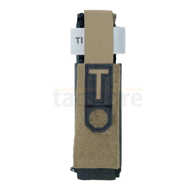 The Laser Cut Universal Tourniquet Holder is designed for quick and reliable deployment. It can be attached to a belt or any MOLLE compatible surface. The one-handed opening allows quick and easy removal of the tourniquet. The holder is compatible with the SOFFT Tourniquet and is secured via a single MOLLE attachment arm.
