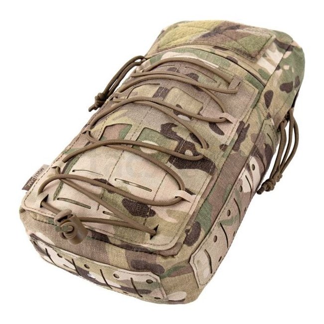 The Multi Mission Vertical Pouch is an elongated utility pouch designed for tactical operations requiring rapid access to equipment. It includes a dedicated compartment with two elastic loops backed by Tegris for shock tubes or slap‑charges, and a roomy main compartment capable of storing up to a 1.5 L hydration bladder.