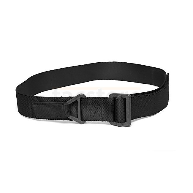 The webbing used is 4088 type V11 and has a breaking strain greater than 6000 lbs. The Metal Buckles are made from heat treated hardware with a tensile strength of 2500 lbs and finished in Dark Grey Phosphate. The Material is treated with a resin which makes the belt stiff yet plyable, this is the perfect combination, it will not dig in to your sides but is rigid enough to support a holster or drop leg without the belt twisting.