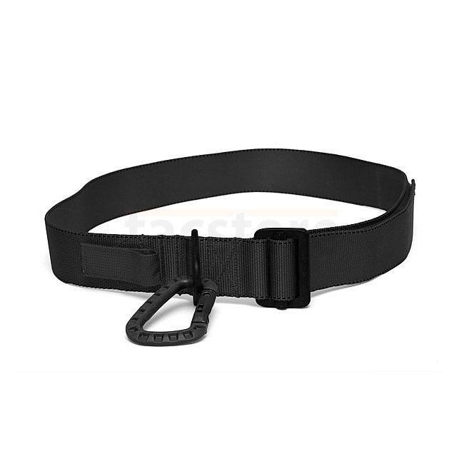 High quality Warrior Riggers Belt in Black, size XL. Made from Mil Spec materials, features 4088 type V11 webbing with breaking strain over 6000 lbs. Metal buckles with 2500 lbs strength. Stiff yet plyable material allows comfortable wear while supporting