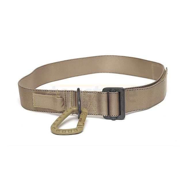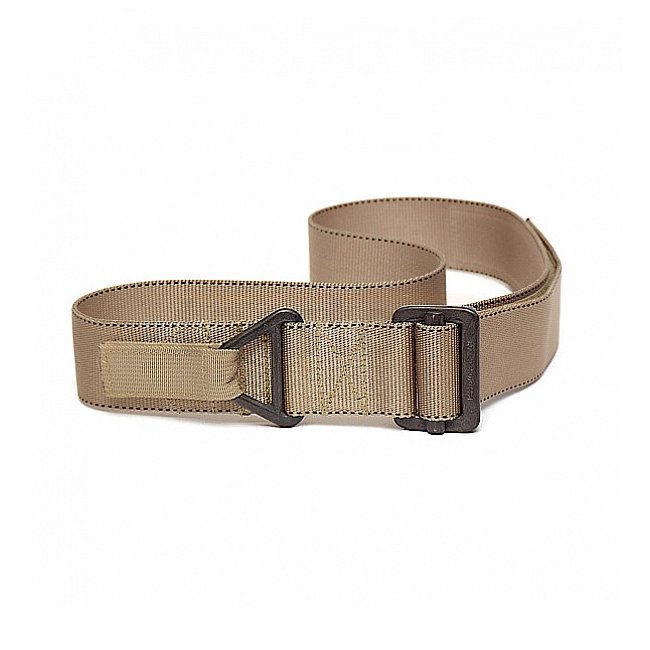 The webbing used is 4088 type V11 and has a breaking strain greater than 6000 lbs. The Metal Buckles are made from heat treated hardware with a tensile strength of 2500 lbs and finished in Dark Grey Phosphate. The Material is treated with a resin which makes the belt stiff yet plyable, this is the perfect combination, it will not dig in to your sides but is rigid enough to support a holster or drop leg without the belt twisting.