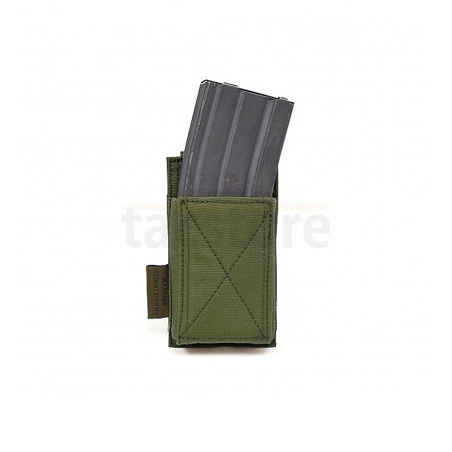 Low profile Warrior Single Elastic Magazine Pouch in Olive for quick and secure access during speed reloads. Fits M4, AK, and PMAGs.