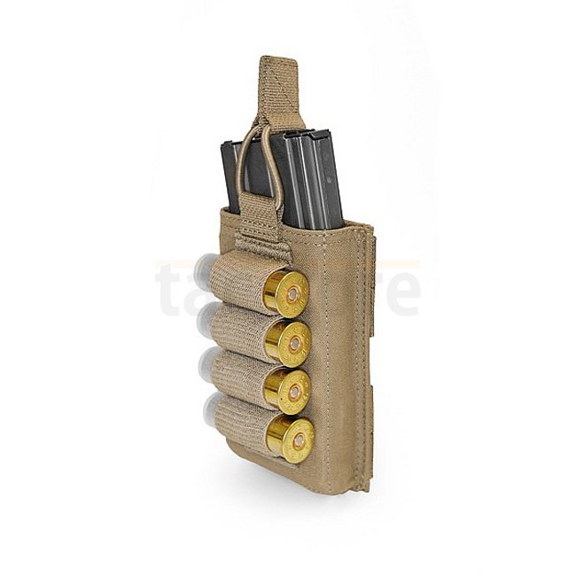 Discover the Warrior Single Open 5.56mm mag pouch with elastic retention and space for four 12-gauge shotgun shells.