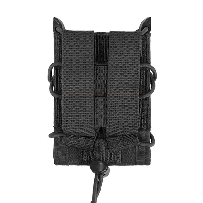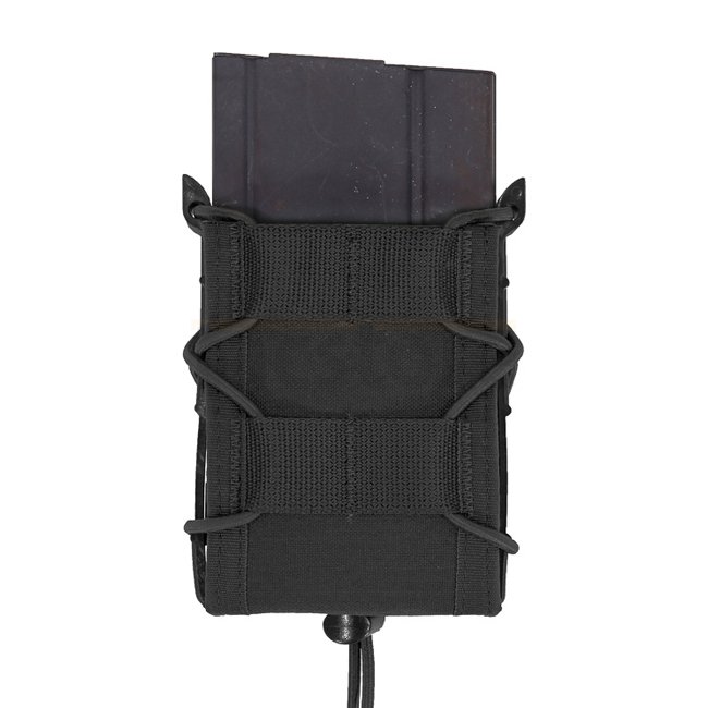 The Warrior Single Quick Mag Pouch is a versatile multi-purpose pouch designed to hold a variety of 5.56mm magazines, including P-Mags, as well as 7.62mm x 39mm AK mags, M14, and FAL magazines. Size adjustment is made using elastic shock cords threaded through the sides of the pouch. Optional bungee retention tabs, similar to those found on Warrior Assault Systems Open Mag Pouches, can be added for extra security.