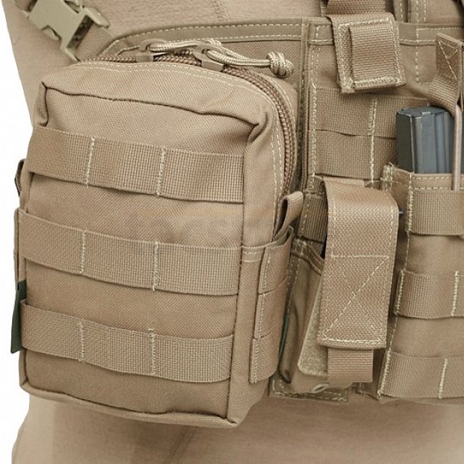 This is a great all round small and compact utility pouch. It features 4 internal elastic strips, a second internal Velcro pocket and includes heavy duty zips with silent pull tabs. The Small Utility Pouch takes up 3 horizontal rows of MOLLE on compatible vests and bags.