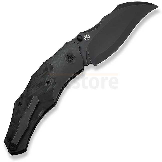 The WE Knife Orc Boss is a powerful folding knife designed by Grant Chambers of Chambers Designs. It features a curved hawkbill blade in black stonewashed CPM 20CV, engineered for aggressive slicing and standout visual impact.