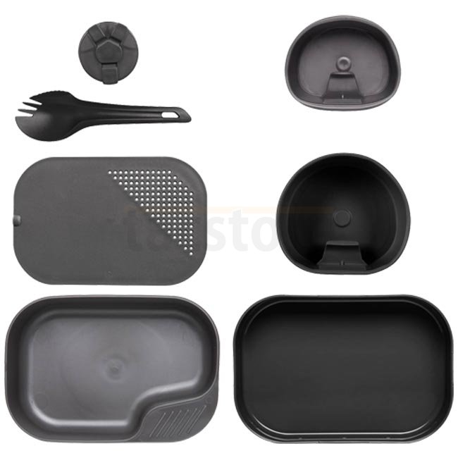 A complete and compact camp kitchen set for outdoor enthusiasts, the Wildo Camp-A-Box Complete in Black/Dark Grey. Includes all essential utensils and containers in a sleek and stylish design.