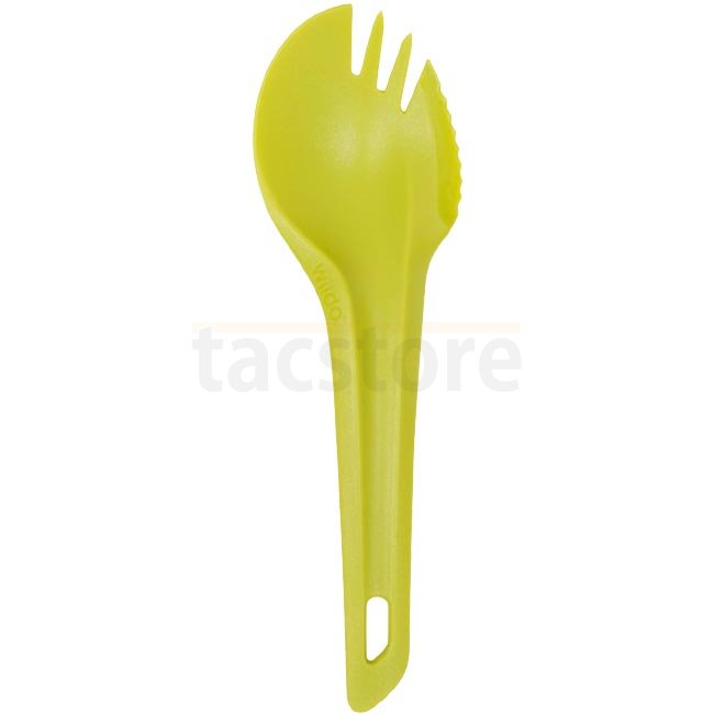 Compact and ergonomic cutlery kit - Wildo Spork in Lime color, combines fork, knife, and spoon in lightweight and durable plastic. Perfect for outdoor adventures!
