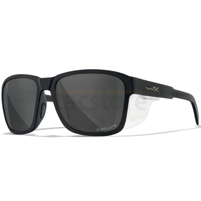 Wiley X WX Trek Captivate Polarized Grey - Black Matt sunglasses offer a bold, confident look with modern rectangular shape and rubberized nose pads for a secure fit. Easily attachable/removable side shields for added functionality. Captivate™ Polarized G