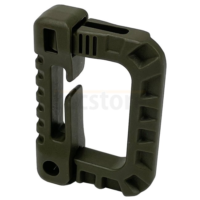 Highly durable plastic carabiner designed for quick equipment fastening on the MOLLE system. Dimensions 50 x 38 x 12 mm, max. webbing width 25 mm / 1 inch. Not suitable for climbing or rescue missions.