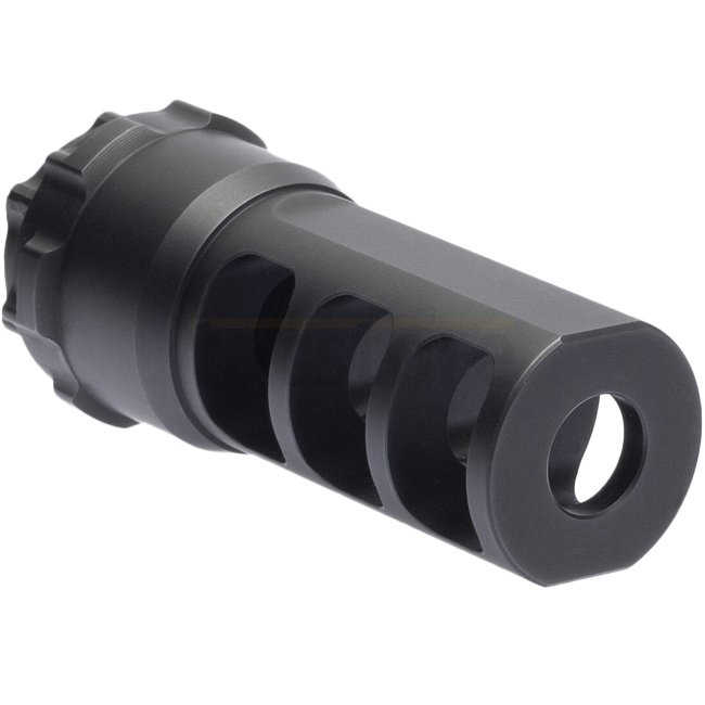 Frein de bouche Acheron HexaLug 7.62mm - 5/8-24 UNEF : Frein efficace avec interface HexaLug, déviant les gaz sur le côté pour prolonger la durée de vie du silencieux.