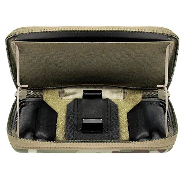 La Agilite Battleshell Phone Pouch est une solution universelle pour transporter n’importe quel smartphone ou dispositif électronique, avec ou sans coque de protection. Elle se fixe directement sur un porte-plaques, un chest rig ou toute plateforme MOLLE, offrant un accès mains libres et une visibilité constante de l’écran. Sa coque thermoformée protège efficacement contre les chocs, tandis que le montage incliné permet un accès fluide aux chargeurs. Le système de fixation mobile empêche toute pression accidentelle sur les boutons et autorise une utilisation à une main. Elle comprend aussi deux sorties pour câbles, une poche interne pour documents, et un panneau autoagrippant pour l’identification.