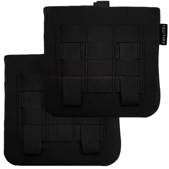 Pochette de Protection Latérale Agilite Flank - Noir : Ensemble de 2 pochettes pour plaques latérales fabriquées en CORDURA® 500D durable. Convient pour des plaques latérales de 6x6 ou 6x8 pouces. Design compact, 18x17x20cm, léger 90g.