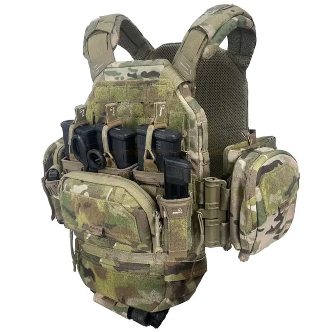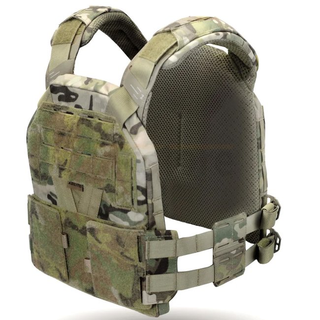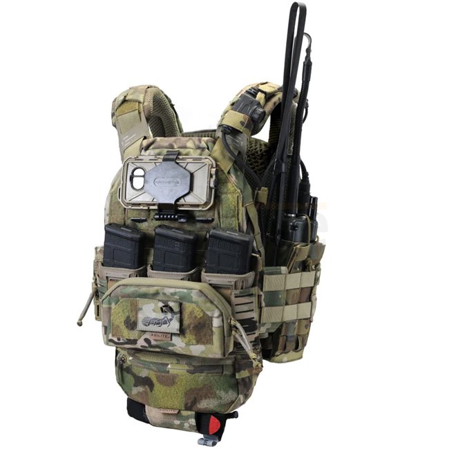 Gilet porte-plaques Agilite K-Zero en Multicam - M. Matériau Cordura, poids 790g. Conception en V pour la répartition du poids, ceinture basse profil, gestion intégrée des câbles. Compatible avec différentes tailles de plaques. Compatible avec le sac d'as
