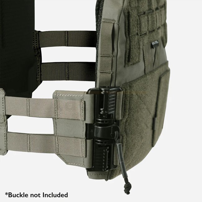 • Le rabat arrière à boucle est compatible avec la Agilite Warfighter Cummerbund ou toute autre cummerbund à crochets et boucles