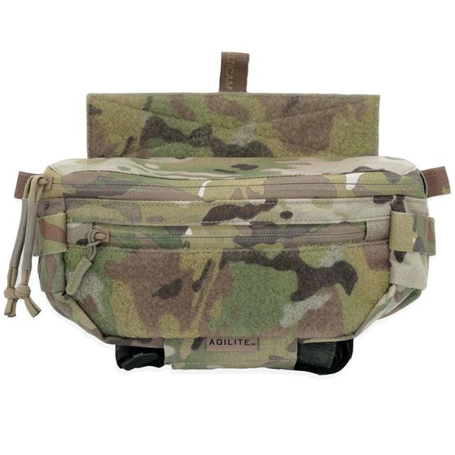 Pochette de suspension Agilite Six Pack - Multicam : Rangement supplémentaire sous votre porte-plaque, design ergonomique, multiples méthodes de fixation, accès rapide aux garrots, se transforme en sac banane, trou de drainage. CORDURA® 500D, 47 x 13 x 3c