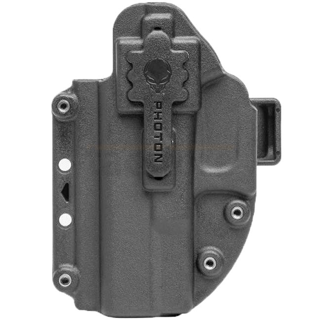 Transportez de manière sécurisée votre Smith & Wesson M&P Shield 9mm avec l'étui Photon d'Alien Gear. Conception ambidextre, prêt pour optique, et compatible avec des armes à feu à hausse suppressive élevée. Inclinaison et hauteur de port ajustables pour