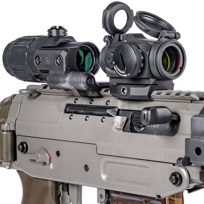 Support de Loupe Arisaka Bas EoTech - Noir - support durable en Aluminium 6061-T651 et 7075-T651, avec une hauteur de ligne centrale de 23mm, pesant seulement 60g. Compatible avec les loupes Eotech G33, G43, et G45.