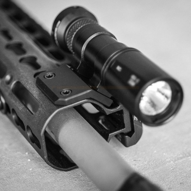 La montage est usiné CNC à partir d'aluminium 6061-T6 et anodisé à revêtement dur MIL-A-8625 Type III. Comprend les vis nécessaires pour fixer le corps de la lumière au montage. Nécessite une clé Torx T15 et une clé Allen 5/64" pour l'installation (non incluses). Couple de serrage recommandé: 20 inch lbs pour KeyMod et vis à corps lampes avec frein-filet de force moyenne. Fabriqué aux Etats-Unis.
